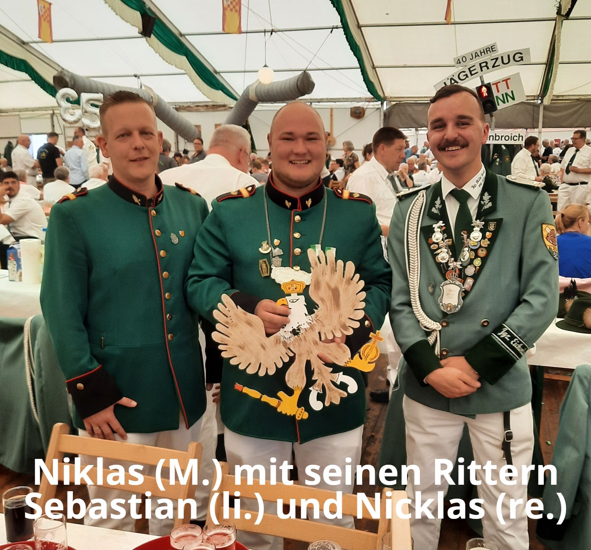 Am 30. April 2022 war es endlich wieder soweit, die Spätzünder trafen sich nach 2 ereignisarmen Jahren zum Königsschießen. Nach dem Schießen der Pfänder (Kopf-Tobias, li. Flügel-Marc, Schweif-Niklas und re. Flügel-Michael) hat sich unser lieber Spieß in einem spannenden Wettbewerb gegen seine Mitbewerber durchgesetzt. Markus ist somit der erste König der Spätzünder, der zum diesjährigen Schützenfest die neue Königskette durch Kleinenbroich tragen darf . Der ganze Zug, nebst den Damen, freuen sich mit Markus und gratulieren ganz herzlich πππ. Ein Dank an alle, es war ein toller Abend der Lust auf mehr gemacht hat π.