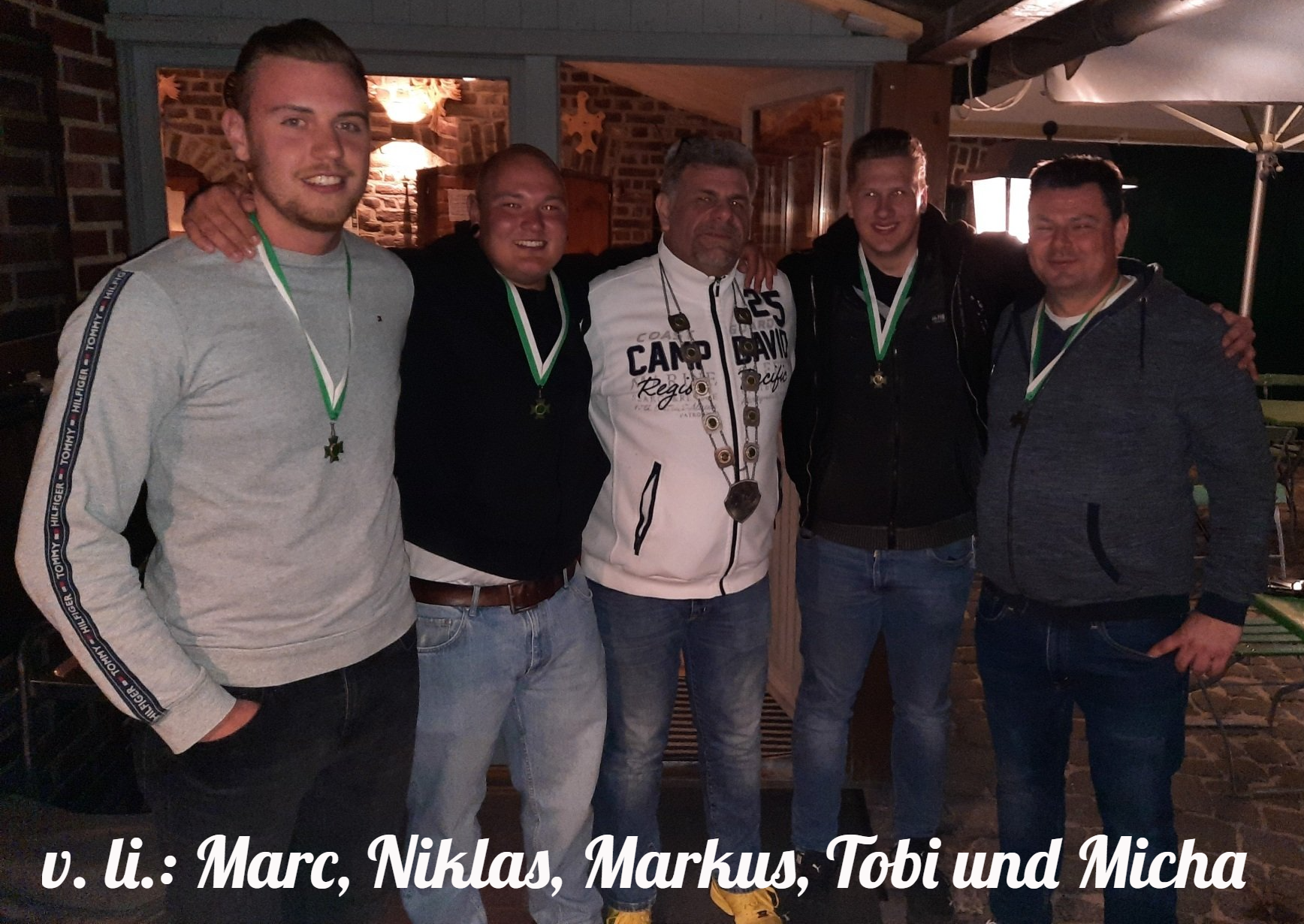Am 30. April 2022 war es endlich wieder soweit, die Spätzünder trafen sich nach 2 ereignisarmen Jahren zum Königsschießen. Nach dem Schießen der Pfänder (Kopf-Tobias, li. Flügel-Marc, Schweif-Niklas und re. Flügel-Michael) hat sich unser lieber Spieß in einem spannenden Wettbewerb gegen seine Mitbewerber durchgesetzt. Markus ist somit der erste König der Spätzünder, der zum diesjährigen Schützenfest die neue Königskette durch Kleinenbroich tragen darf . Der ganze Zug, nebst den Damen, freuen sich mit Markus und gratulieren ganz herzlich πππ. Ein Dank an alle, es war ein toller Abend der Lust auf mehr gemacht hat π.